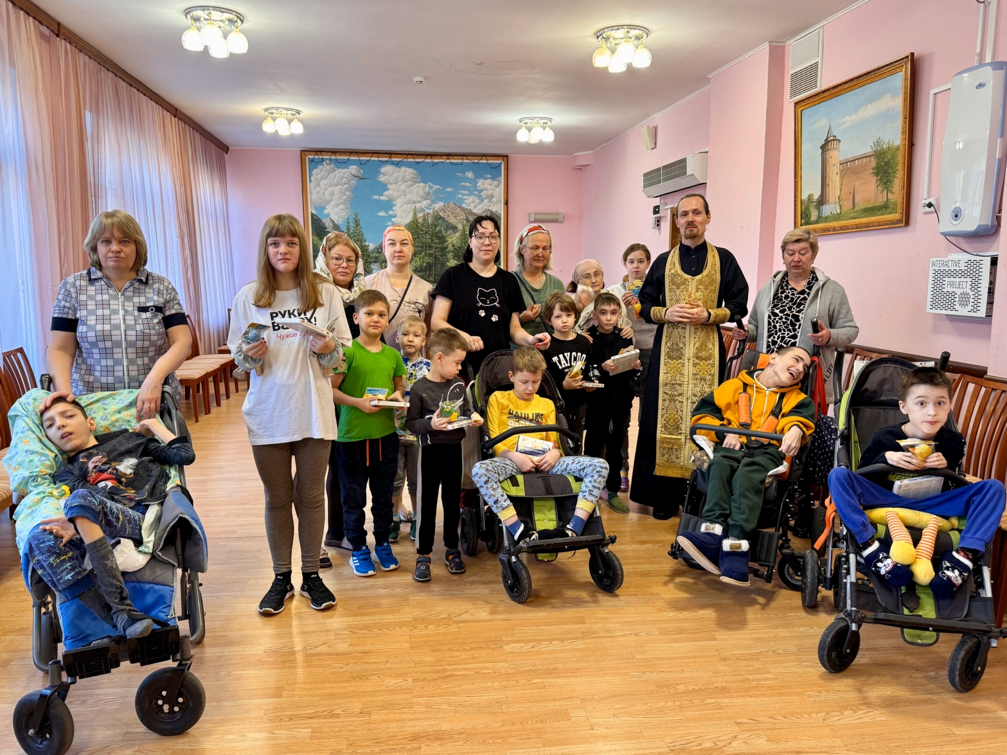 Настоятель Крестовоздвиженского храма города Коломна иерей Иоанн Бакушкин окормляет и посещает реабилитационный центр «Коломенский», где для прохождения реабилитации временно проживают дети-инвалиды и дети с ограниченными возможностями здоровья.