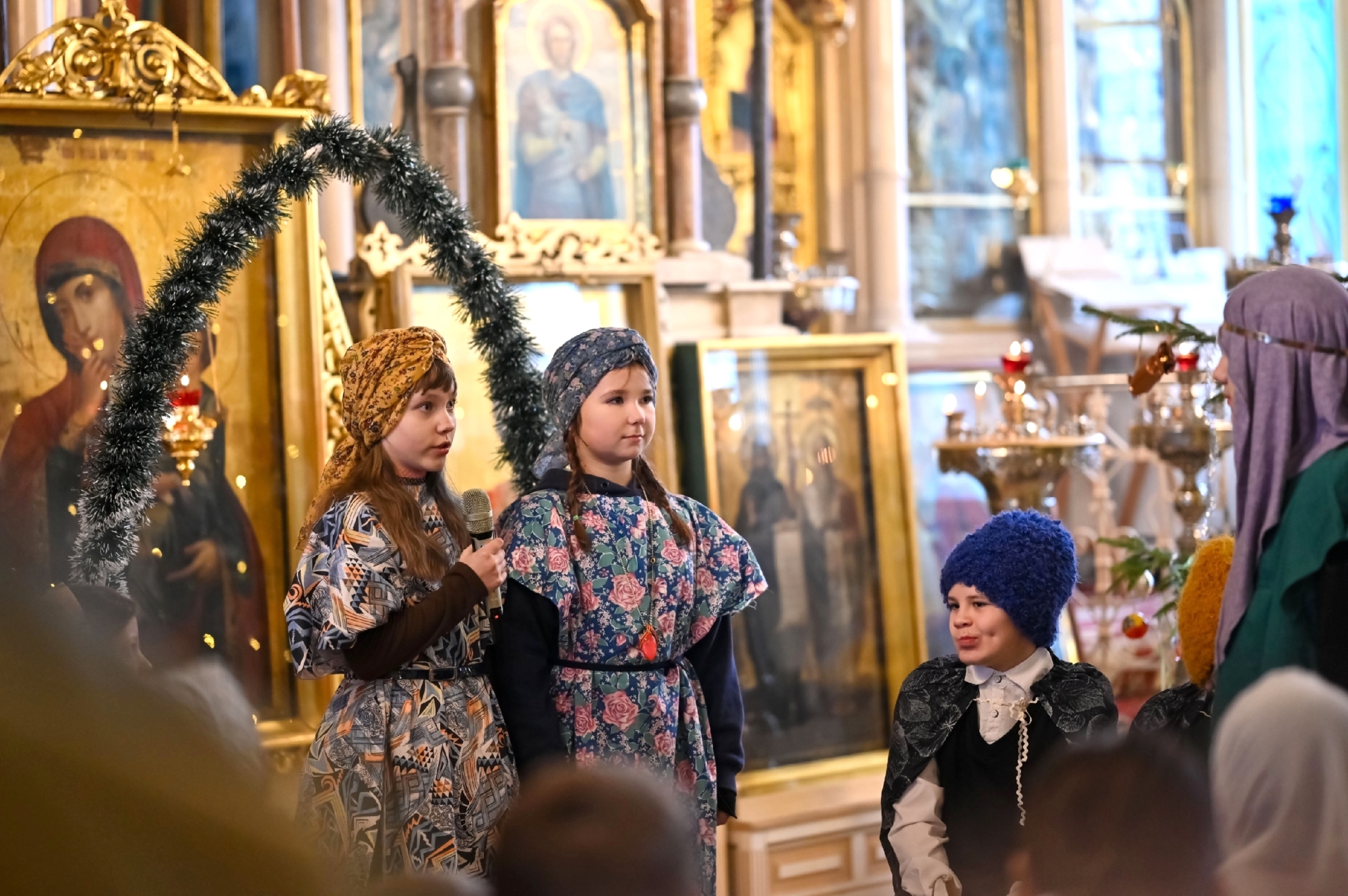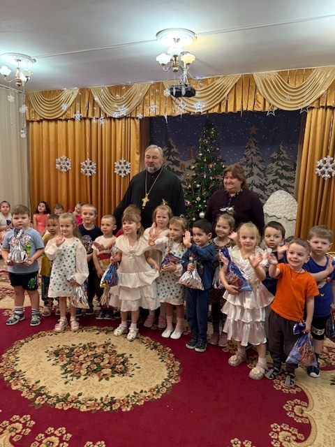 Регент приходского хора Л. А. Горбачева в форме викторины рассказала детям о Рождестве Христовом. Настоятель иерей Александр Кузнецов выступил с поздравительным словом и вручил ребятам подарки от прихода.